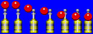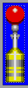 Вообще анимированная картинка представляет собой набор последовательно отображаемых кадров. Эти самые кадры как бы наложены друг на друга и становятся видимыми/невидимыми в запрограммированное аниматором время. Теперь подумаем: какого размера должна получиться анимированная картинка, чтобы в ней могли поместиться все кадры анимации и основание столбика было всегда в центре на одном и том же месте? Самым широким является четвёртый (центральный) спрайт. Но ведь в полном цикле оборота будет ещё кадр, представляющий собой зеркально отображённый четвёртый спрайт, поэтому мы должны к ширине этого спрайта добавить ещё ширину красного шарика (28 + 12 пикселов). Высоту берём первого спрайта слева, так как на нём запечатлён стоячий "в полный рост" столбик с шариком наверху. Однако высоту высчитывать уже необязательно.
